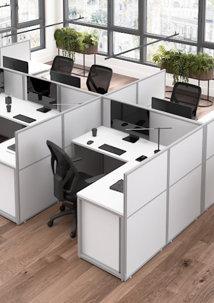 Your office configuration can let you blend both types of layouts. Place cubicles that open to each other to create pods of open workstations where small teams can collaborate, while still enjoying some privacy from the rest of the office.