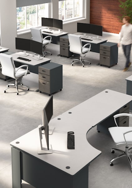 Consider trying standing desks or at least making the option available to your team. Discover the high-end ergonomic desks of our Energize collection or the Move 40 Series collection. Choose computer desks with the right surface area so employees can comfortably spread out, while working with all the equipment they need for the job.
