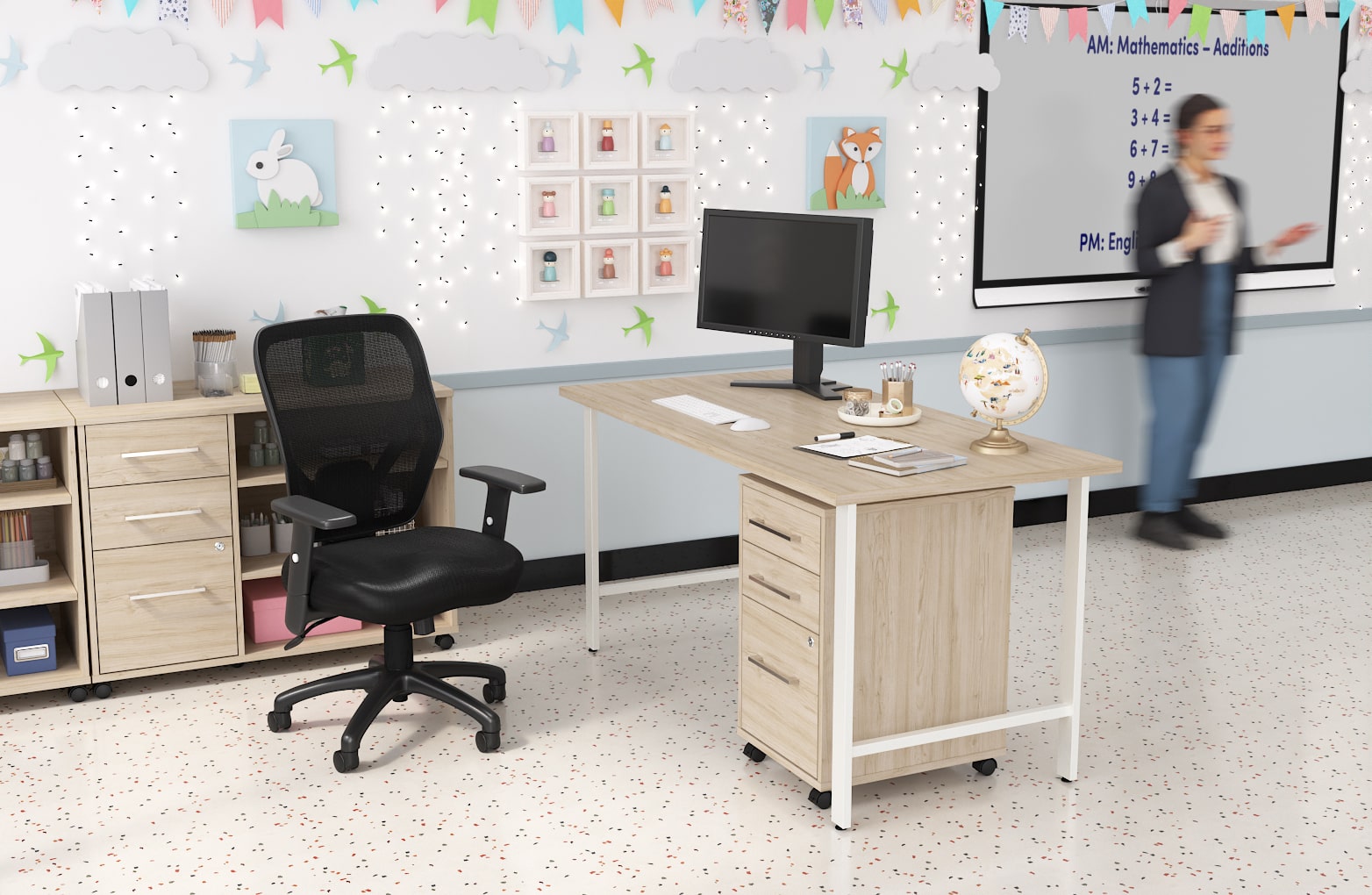 - Stay organized with ergonomic teacher desks and administrative suites that streamline daily tasks and keep essentials close.