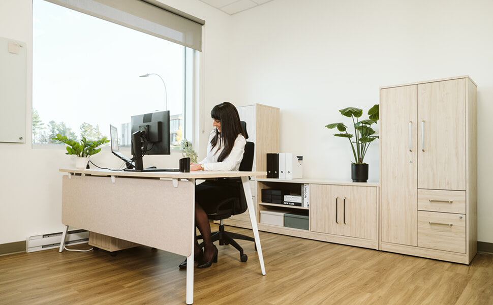- Maximize efficiency with modular desks and storage solutions that adapt to changing workflows and departmental needs.