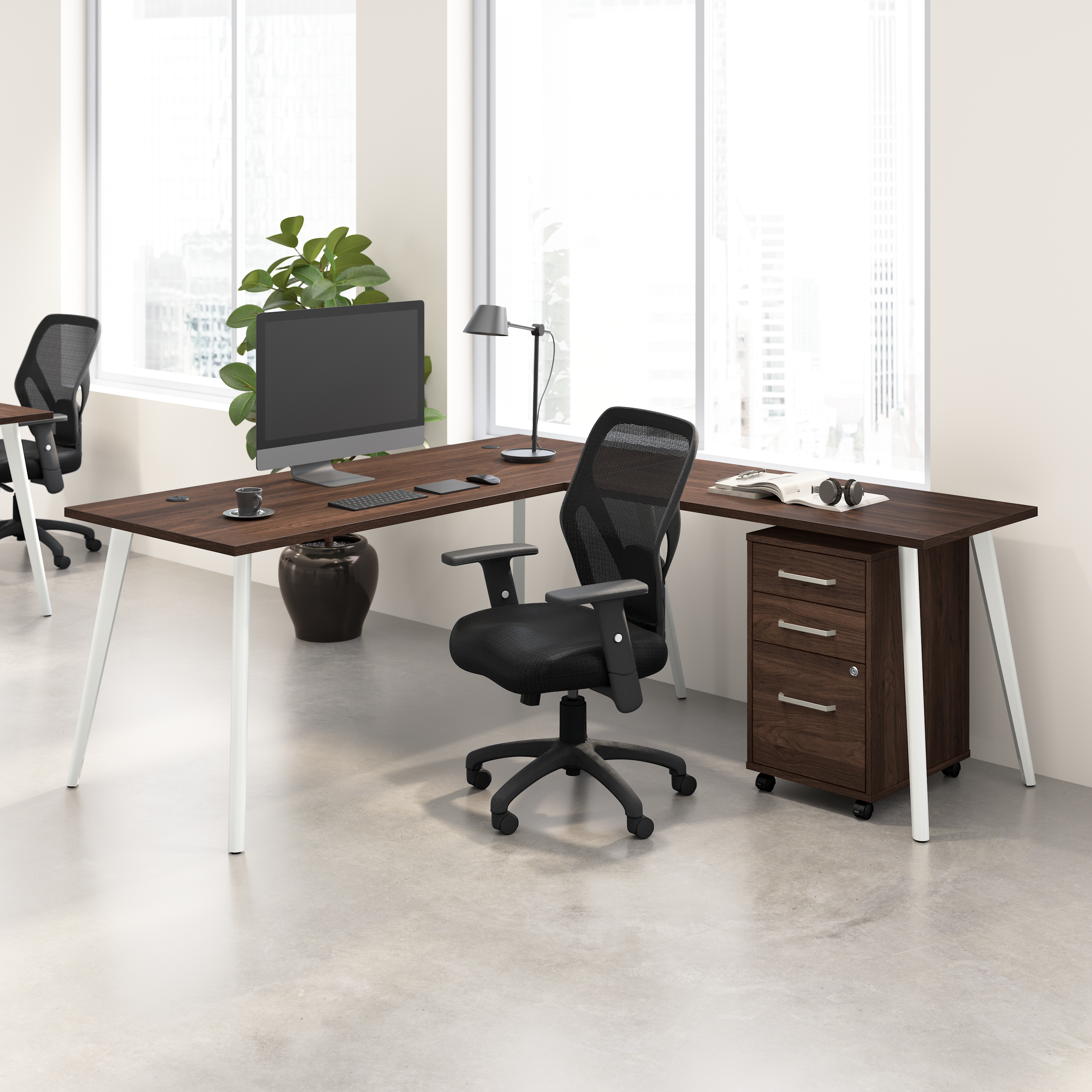 Hybrid 72W x 30D L Shaped Table Desk with Mobile File Cabinet