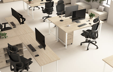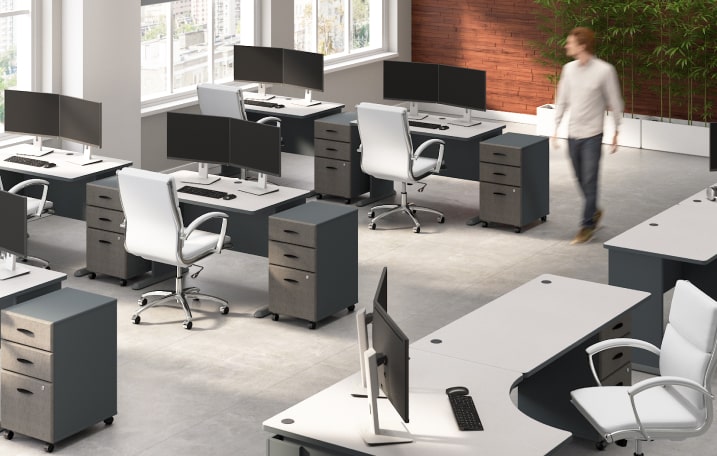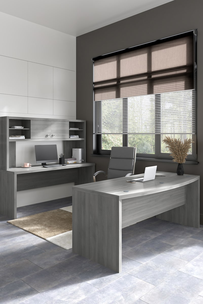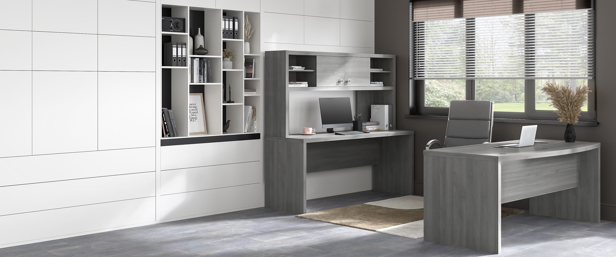 Contemporary office furniture with cohesive computer desk and storage designs that appeal to today’s professionals.