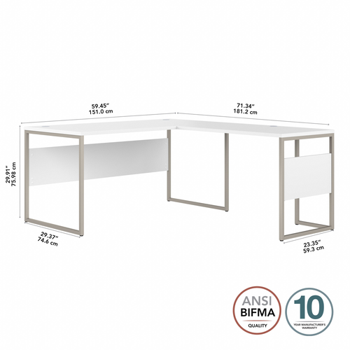 Hybrid 60W x 30D L Shaped Table Desk with Metal Legs