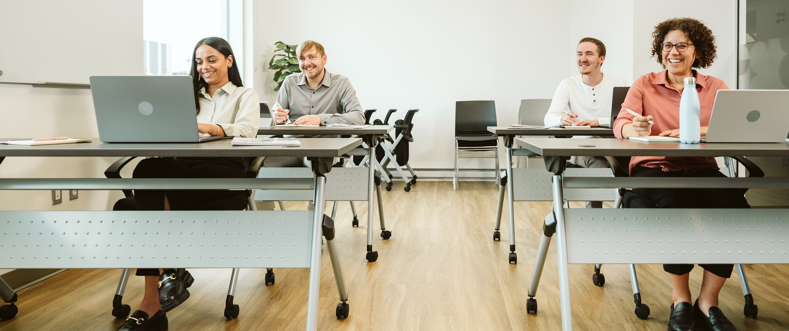 Training tables and chairs that instantly turn any open area into a practical space for presentations and are designed for easy, hassle-free storage.